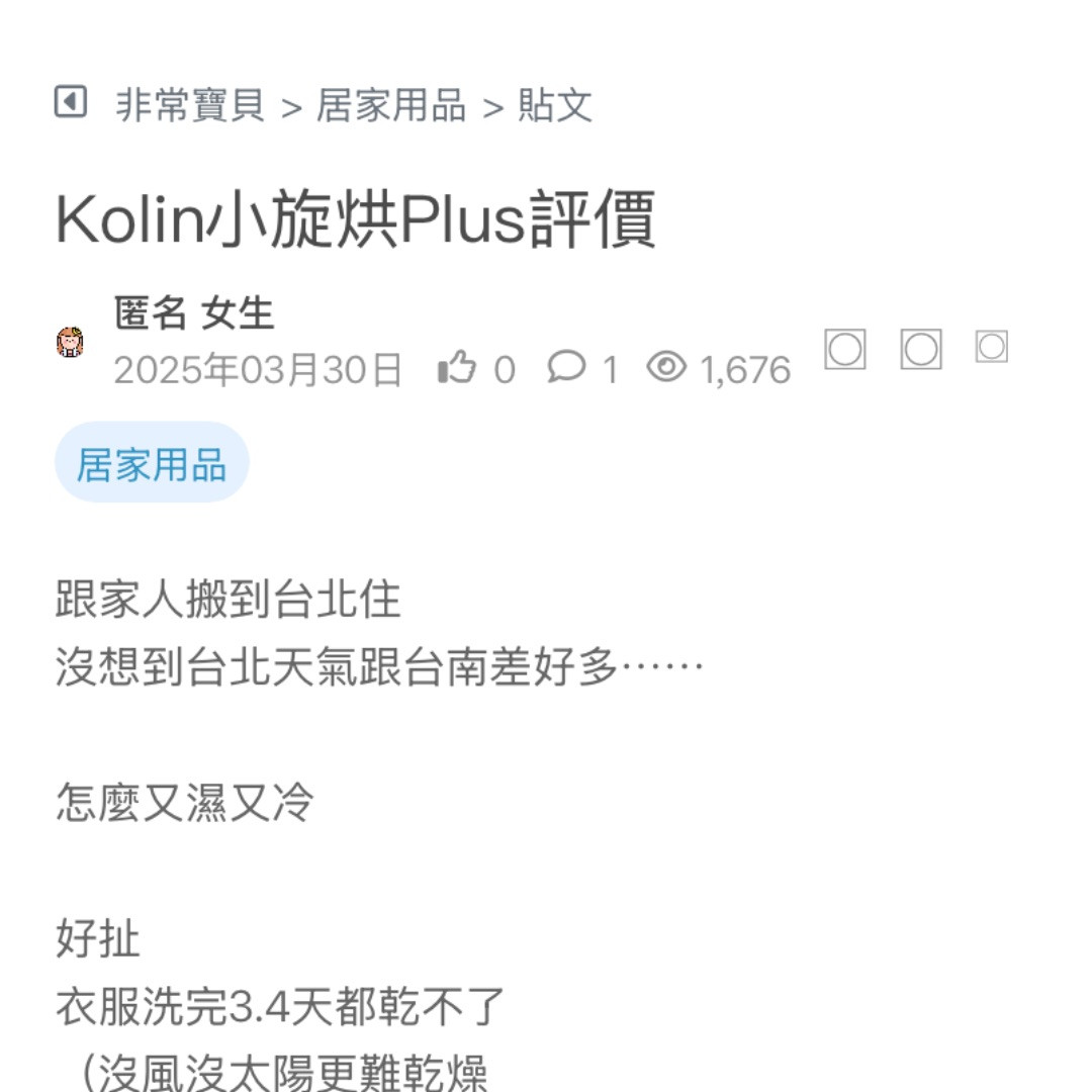 有人知道可以歌林小旋烘大概可以烘幾件衣服嗎