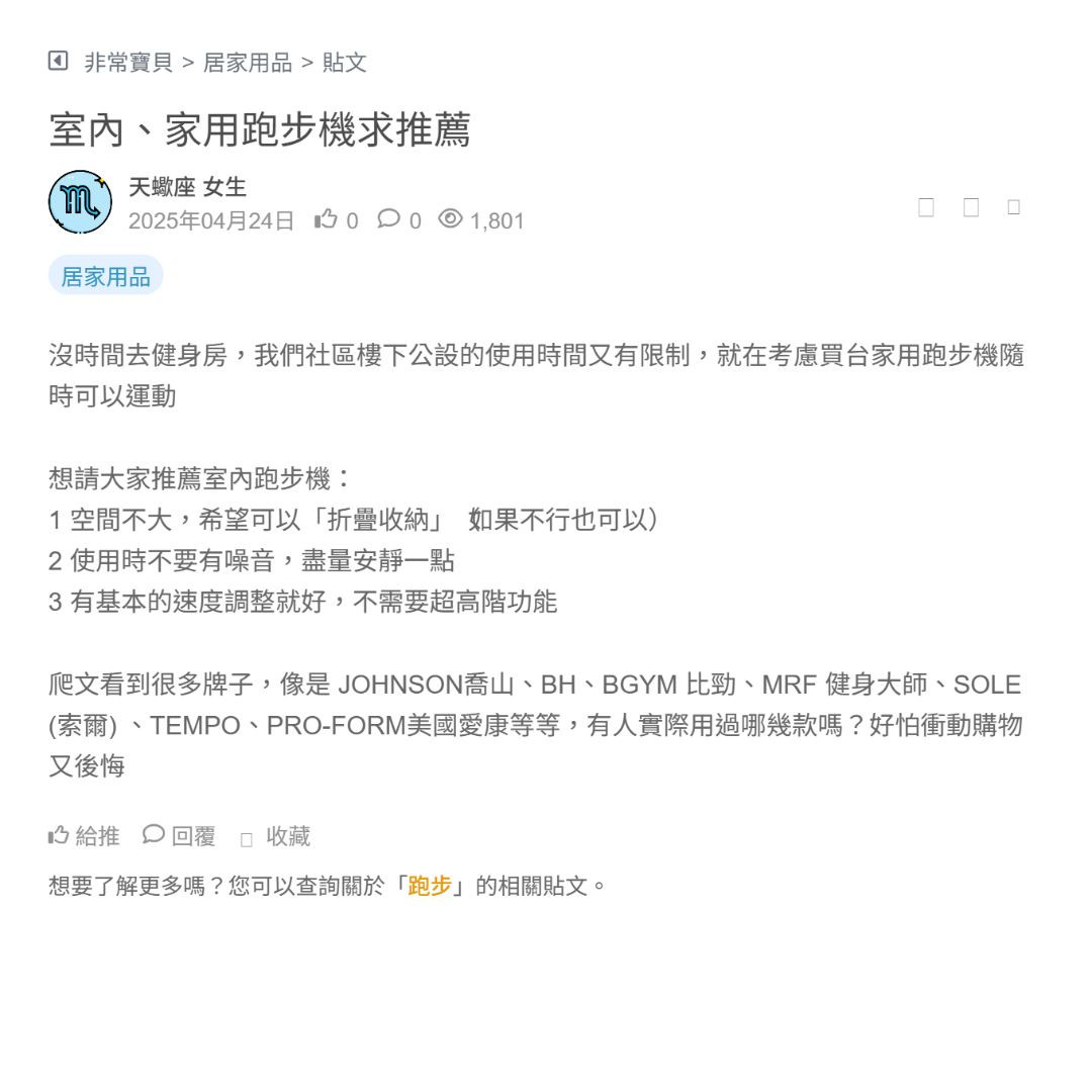 想請大家推薦室內跑步機: