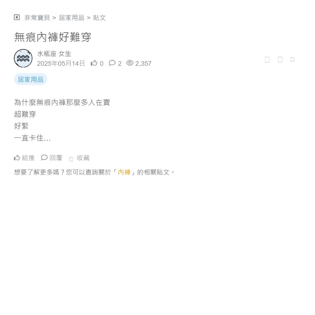 最近看到好多網紅在推那個24HRS無感失憶內衣,忍不住好奇想問問大家的使用心得,Fashion for yes 內衣一直在開團購,看起來每個人使用影片都超推,但又有點擔心...