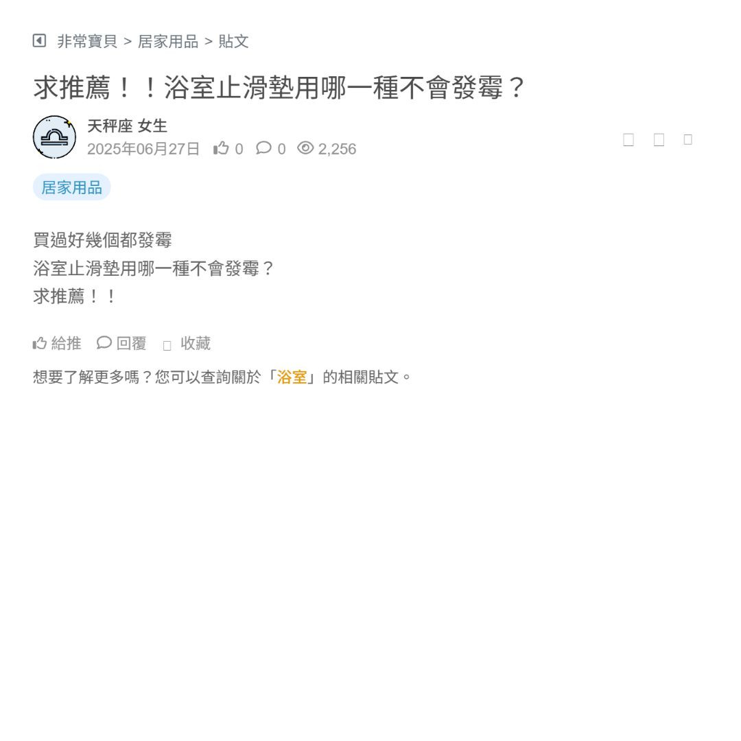 求推薦!!浴室止滑墊用哪一種不會發霉?
