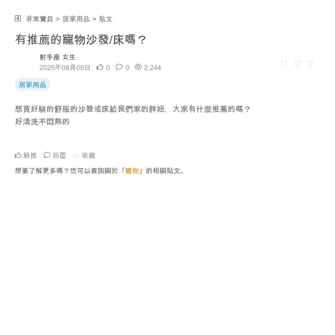 有推薦的寵物沙發/床嗎?