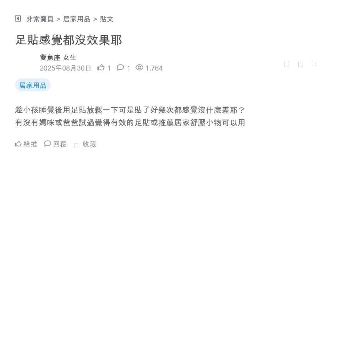 趁小孩睡覺後用足貼放鬆一下可是貼了好幾次都感覺沒什麼差耶?