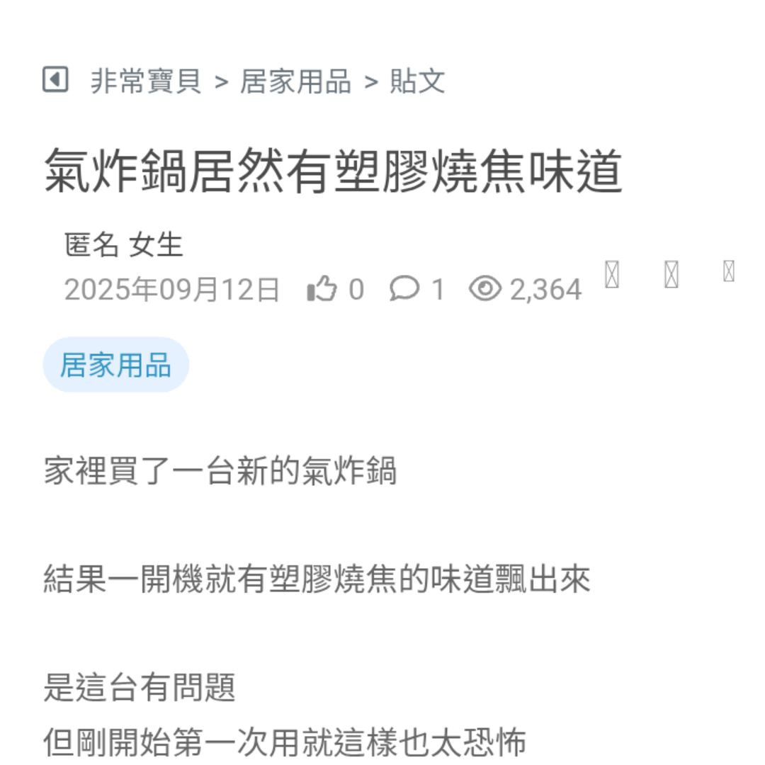 氣炸鍋居然有塑膠燒焦味道