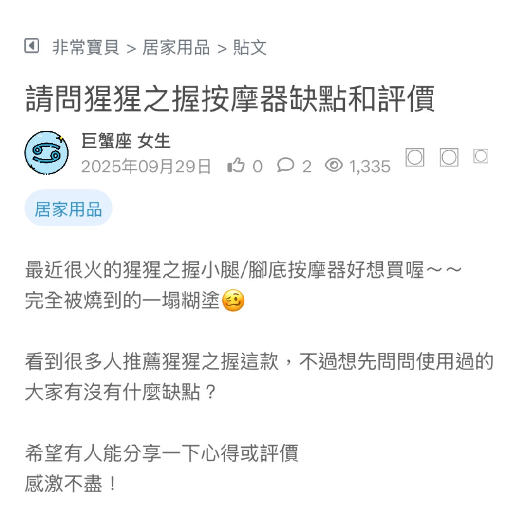 看到很多人推薦猩猩之握這款,不過想先問問使用過的大家有沒有什麼缺點?