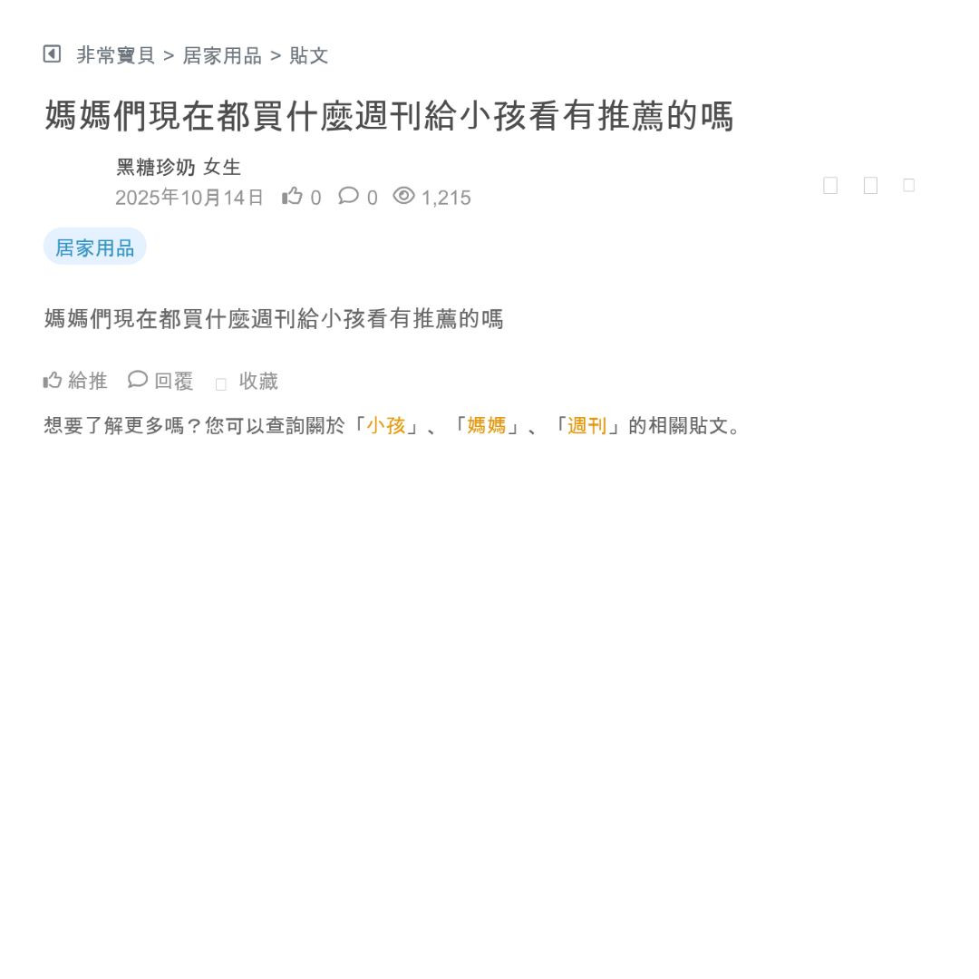 媽媽們現在都買什麼週刊給小孩看有推薦的嗎