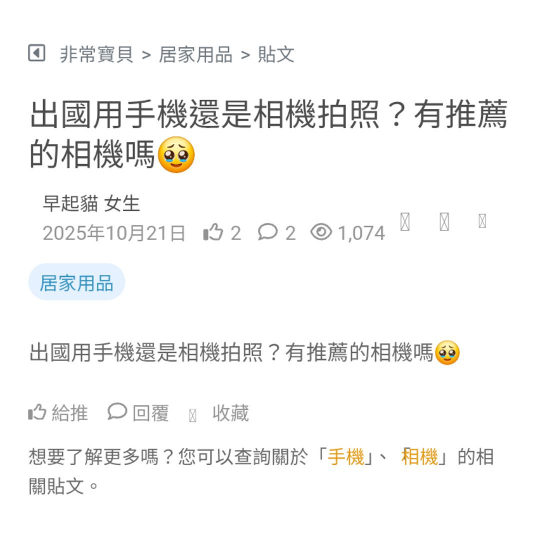 出國用手機還是相機拍照?有推薦的相機嗎🥹