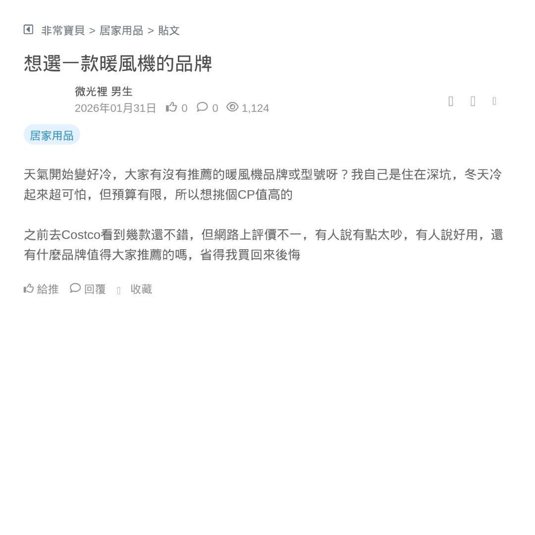 天氣開始變好冷,大家有沒有推薦的暖風機品牌或型號呀?我自己是住在深坑,冬天冷起來超可怕,但預算有限,所以想挑個CP值高的