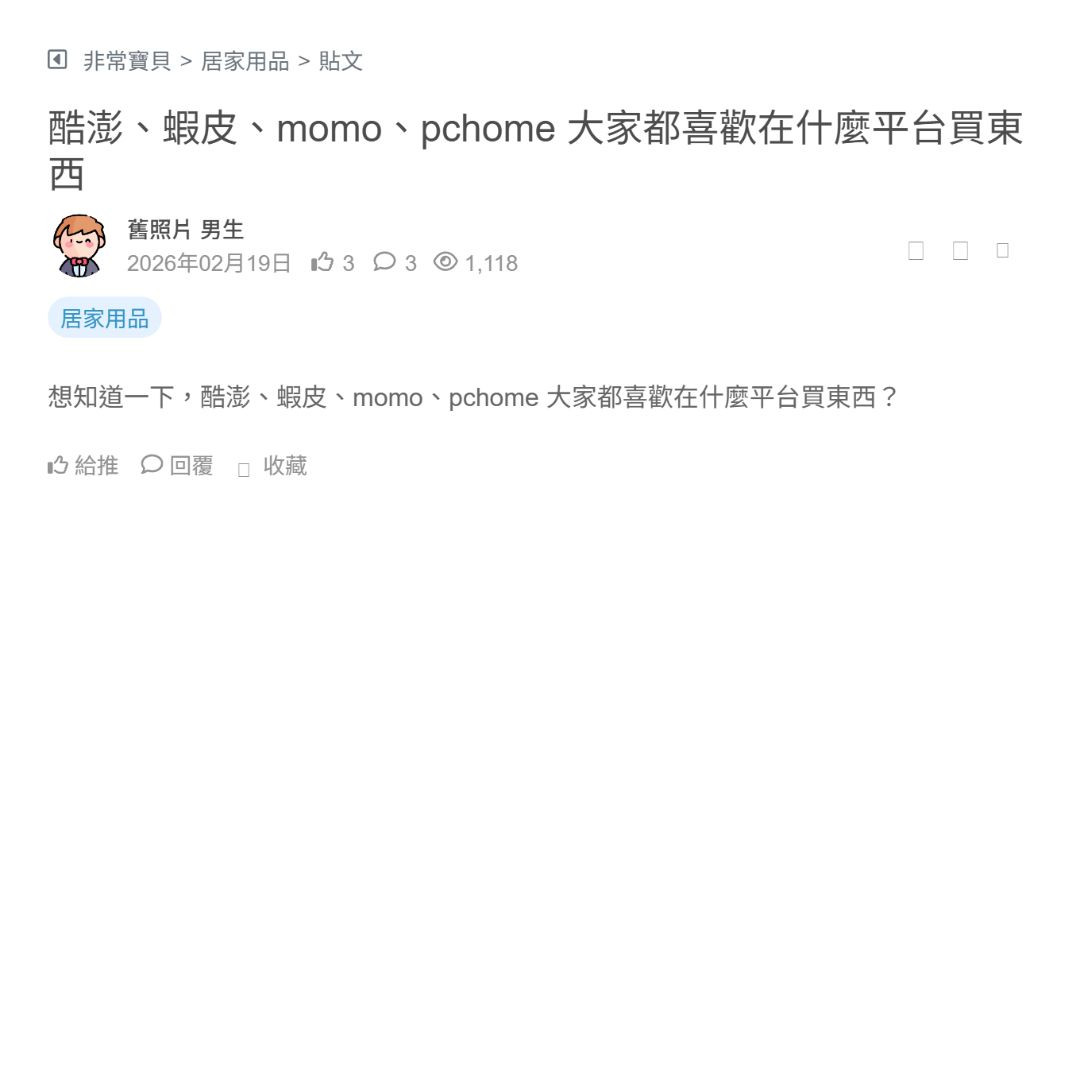 酷澎、蝦皮、momo、pchome 大家都喜歡在什麼平台買東西
