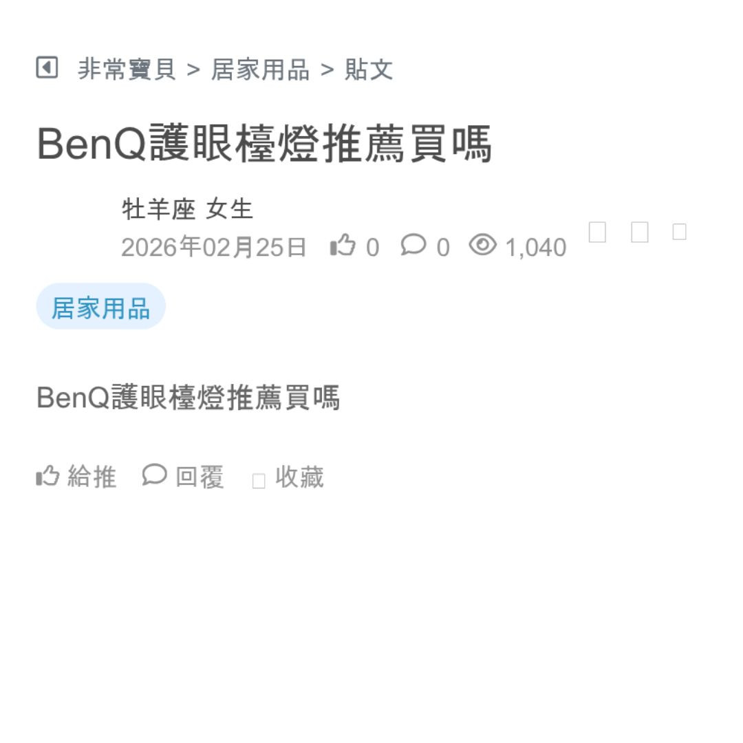 我本身工作多依賴手機和電腦 這幾天眼睛突然感覺一直在乾澀 超不舒服 😣 大家也是因為盯著3C產品太久變這樣? 需要點人工淚液 改用護眼燈? 已經強迫...