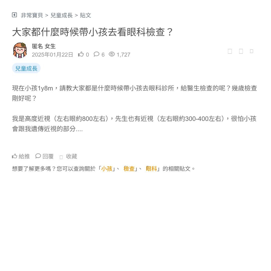 兒童視力如何保養?想跟各位媽媽請教,謝謝🙏 看更多