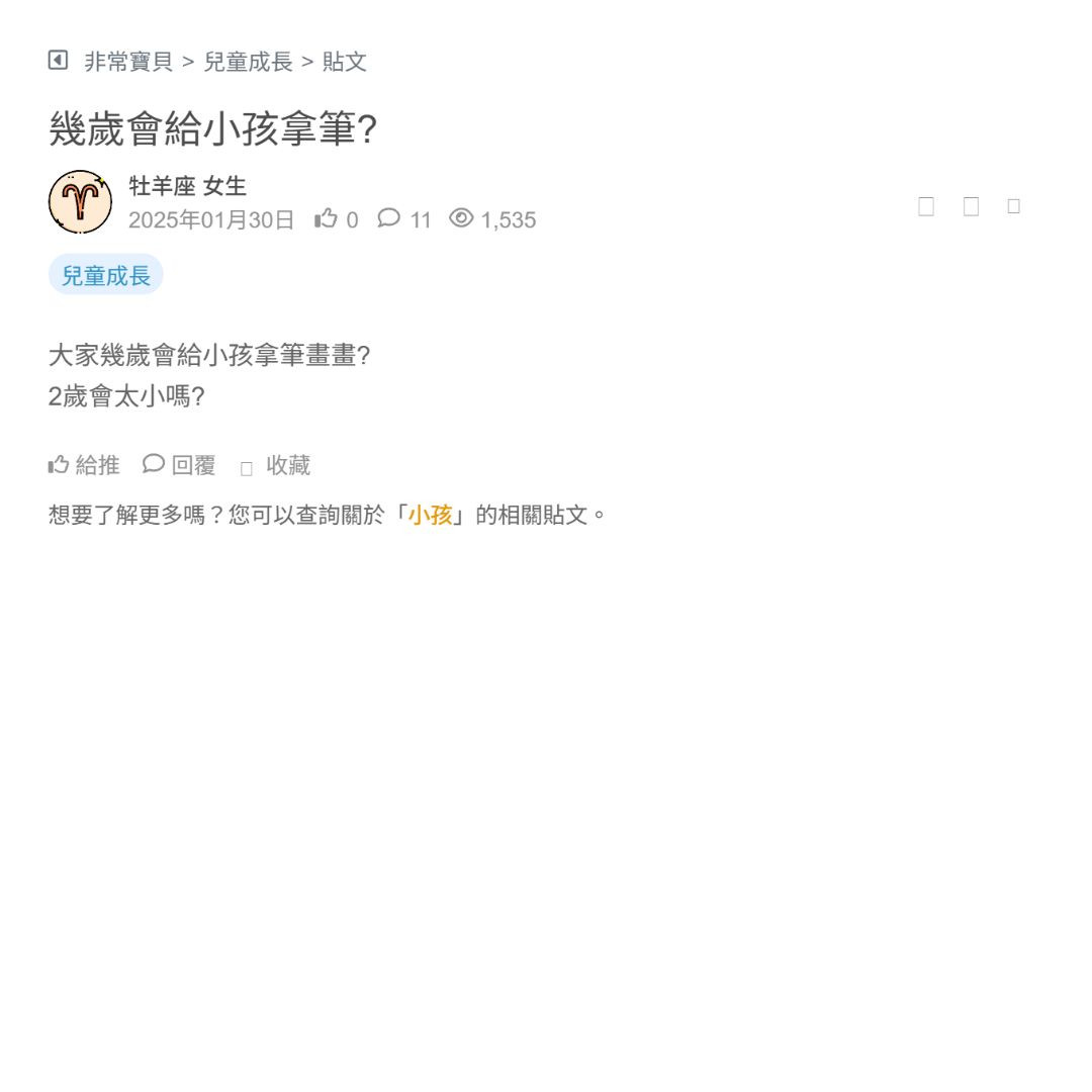 小孩現在快三歲 最近看到他很愛模仿我寫東西 就會開始自己拿筆亂塗亂畫 家中長輩看到怪我「小孩不能太早拿筆」會影響手部發展什麼的 我是真的搞不清楚到底幾歲...