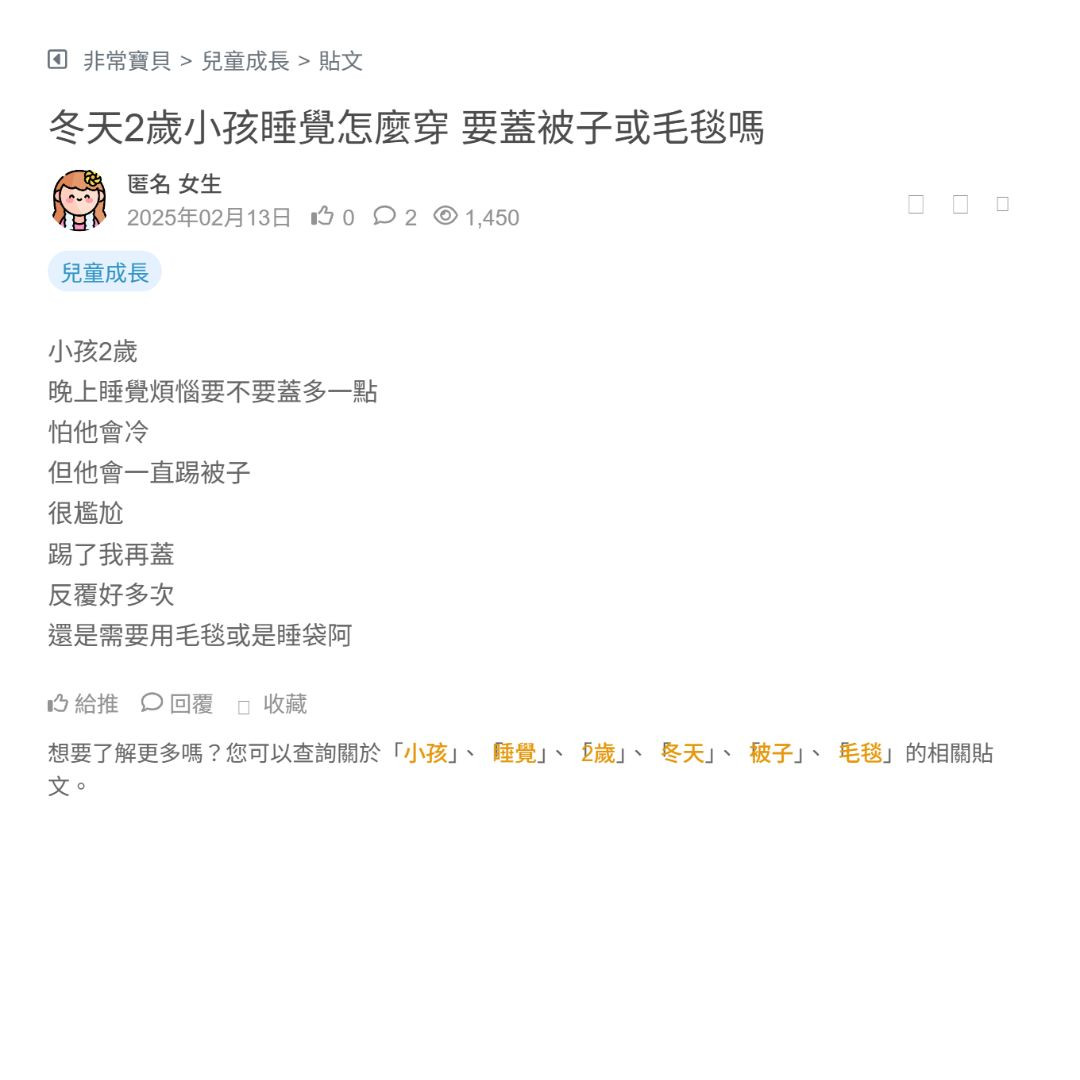 最近天氣好冷 想幫寶寶買保暖的蓋毯 睡覺可以抓著小被被 請問大家寶寶蓋毯、毛毯都去哪裡買 有沒有推薦的呢~~ 看更多