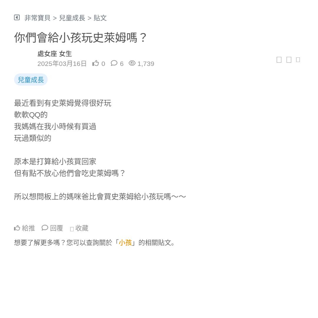 所以想問板上的媽咪爸比會買史萊姆給小孩玩嗎~~
