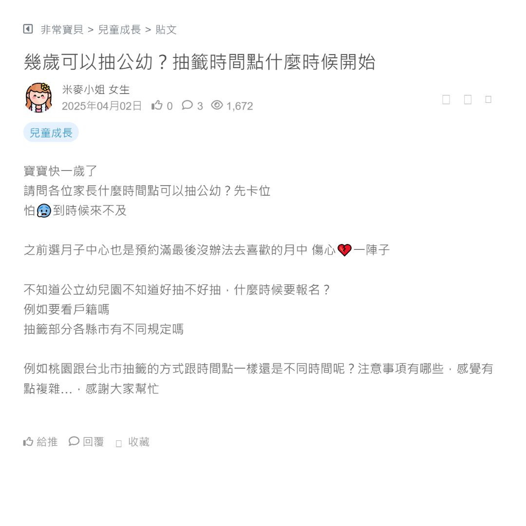 請問各位家長什麼時間點可以抽公幼?先卡位