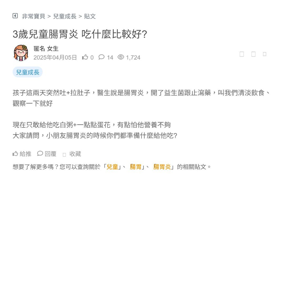 上次腸胃炎都給白粥、白饅頭,又吐又拉連續快5天才好一點😭