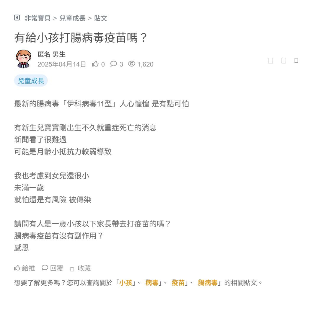 最近新冠疫情又爆發 好擔心寶寶健康 請問各位爸爸媽媽有讓寶寶打新冠疫苗嗎 聽說快篩都買不到 🥹 看更多