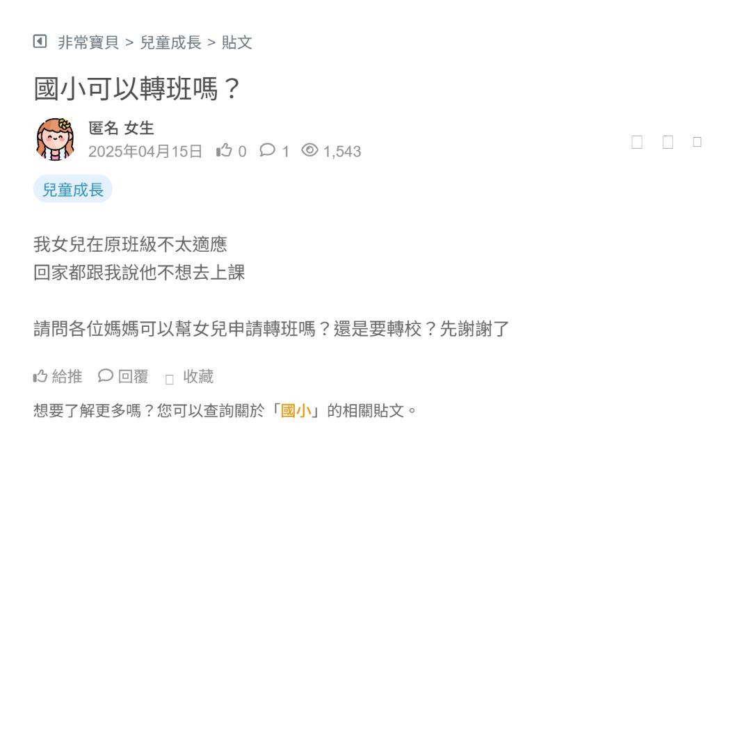請問各位媽媽可以幫女兒申請轉班嗎?還是要轉校?先謝謝了