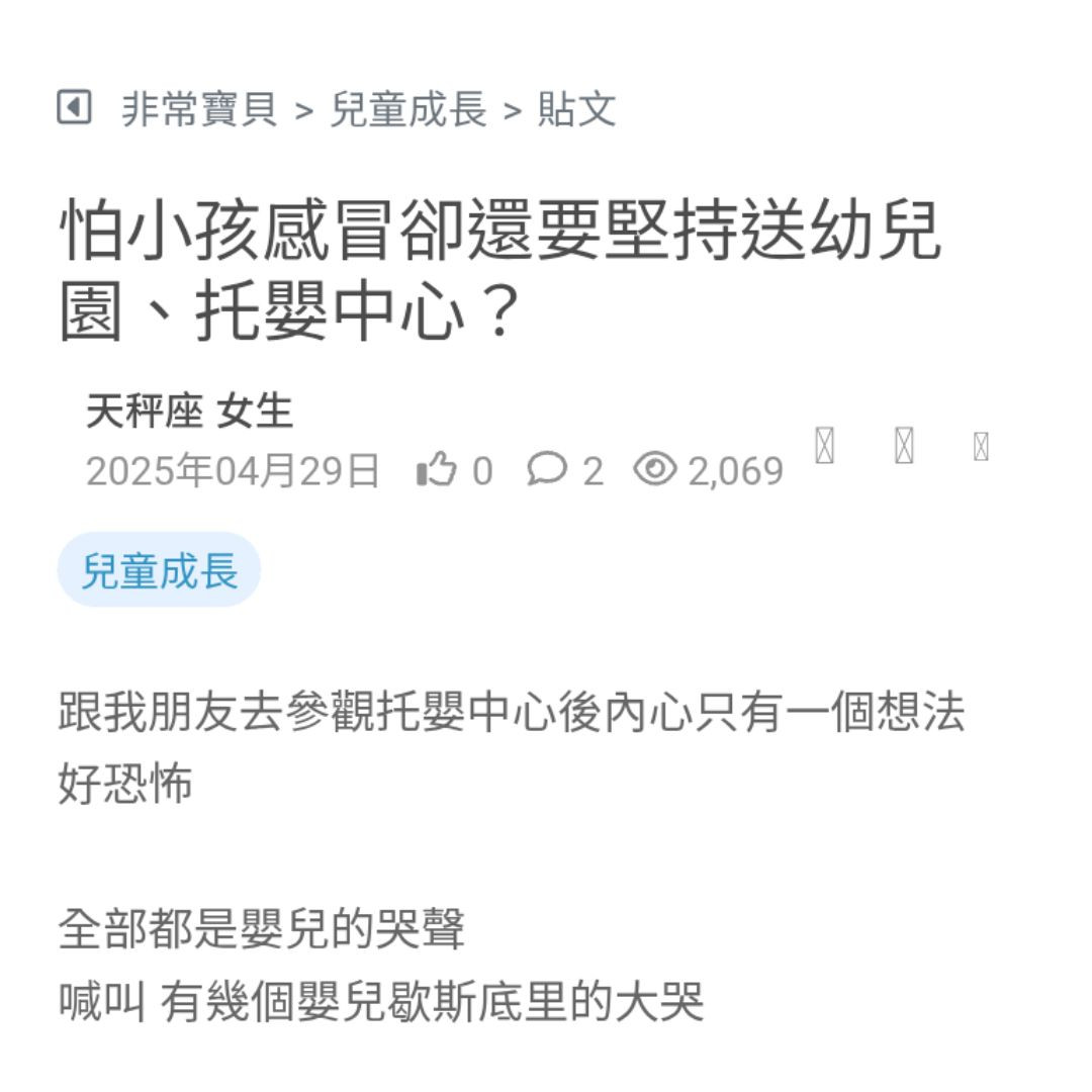 跟我朋友去參觀托嬰中心後內心只有一個想法