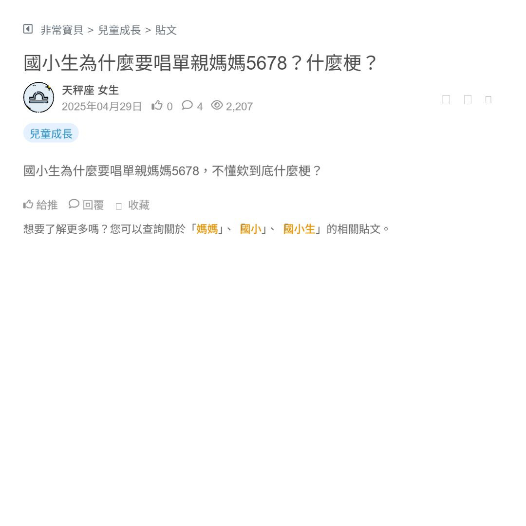 國小生為什麼要唱單親媽媽5678?什麼梗?