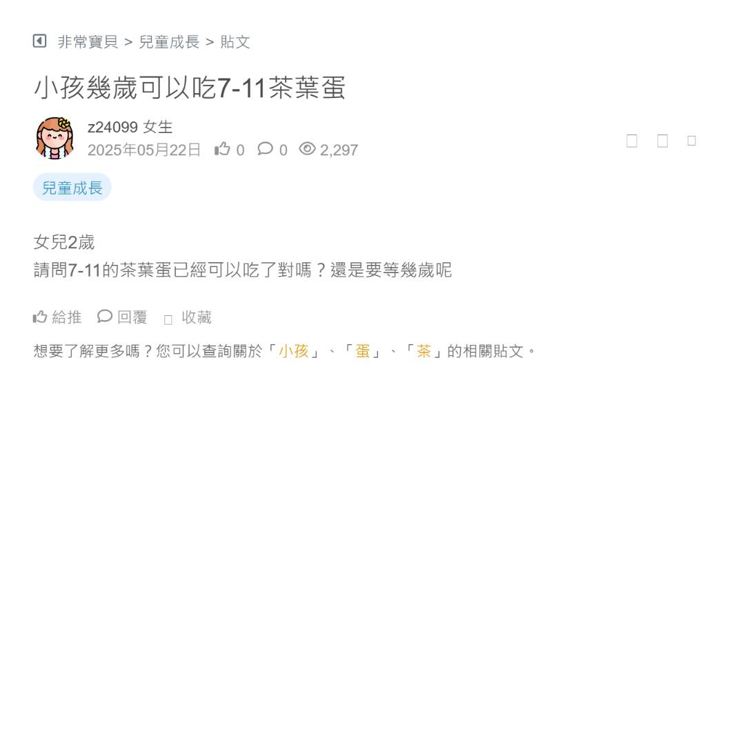 請問7-11的茶葉蛋已經可以吃了對嗎?還是要等幾歲呢