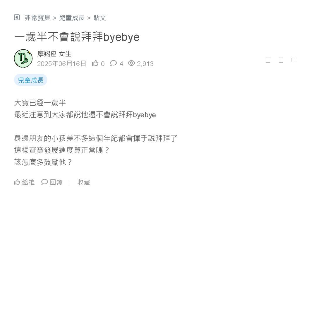 一歲拍拍手、揮手說拜拜都不會要去評估嗎? 看更多
