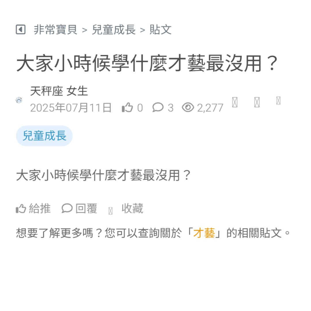 想問一下~小學生都在學什麼才藝? 最近身邊的家長們都在安排才藝課,有音樂的、有運動的、有補英文的,五花八門😵💫培養一技之長 想知道大家的小孩都學什麼?...