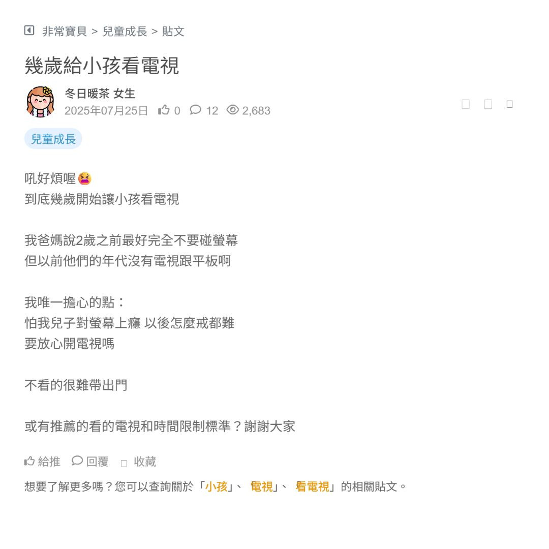生了第一胎已經被嚇呆嚇🐭 二胎出生以後開始走3c育兒路線 別人都說3c邪教 但研究下來發現其實不差 各有優缺點 大兒子沒有3c育兒時 發展潛力還ok 但出社...