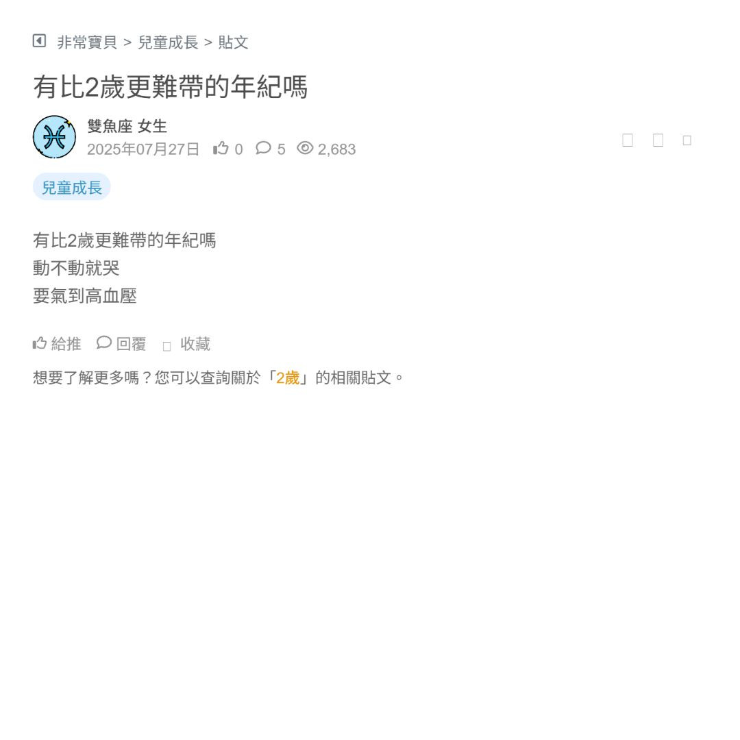 我覺得2歲真的是一個坎,但到3歲、4歲更累,每個年紀都是挑戰