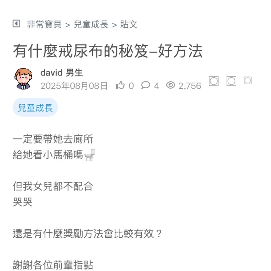 請問大家小孩什麼時候可以戒尿布 我的是男寶 是等他可以站著尿尿的時候嗎? 看更多