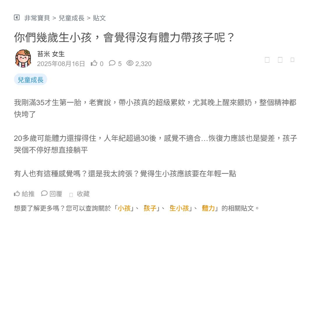 有人也有這種感覺嗎?還是我太誇張?覺得生小孩應該要在年輕一點