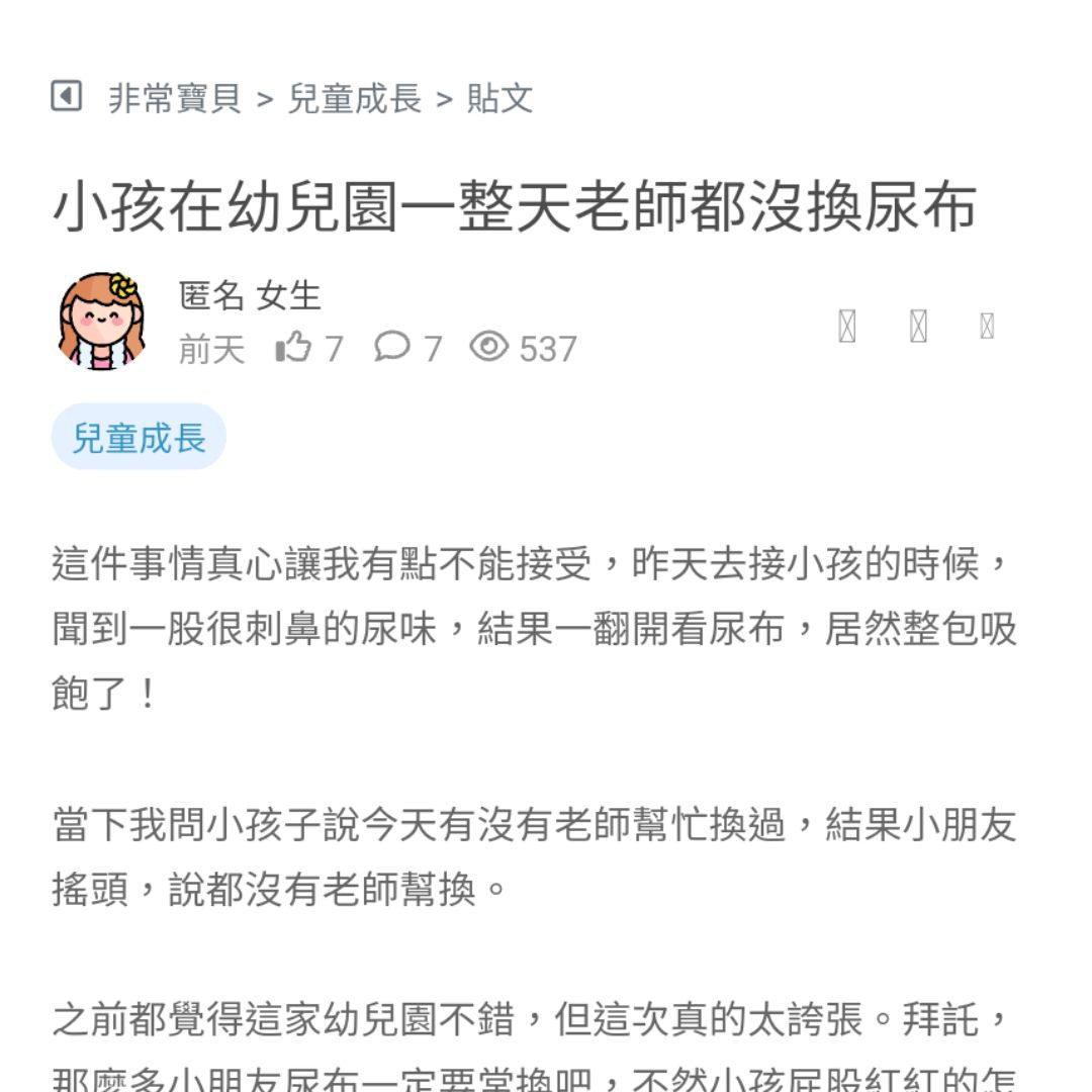 之前都覺得這家幼兒園不錯,但這次真的太誇張。拜託,那麼多小朋友尿布一定要常換吧,不然小孩屁股紅紅的怎麼辦。