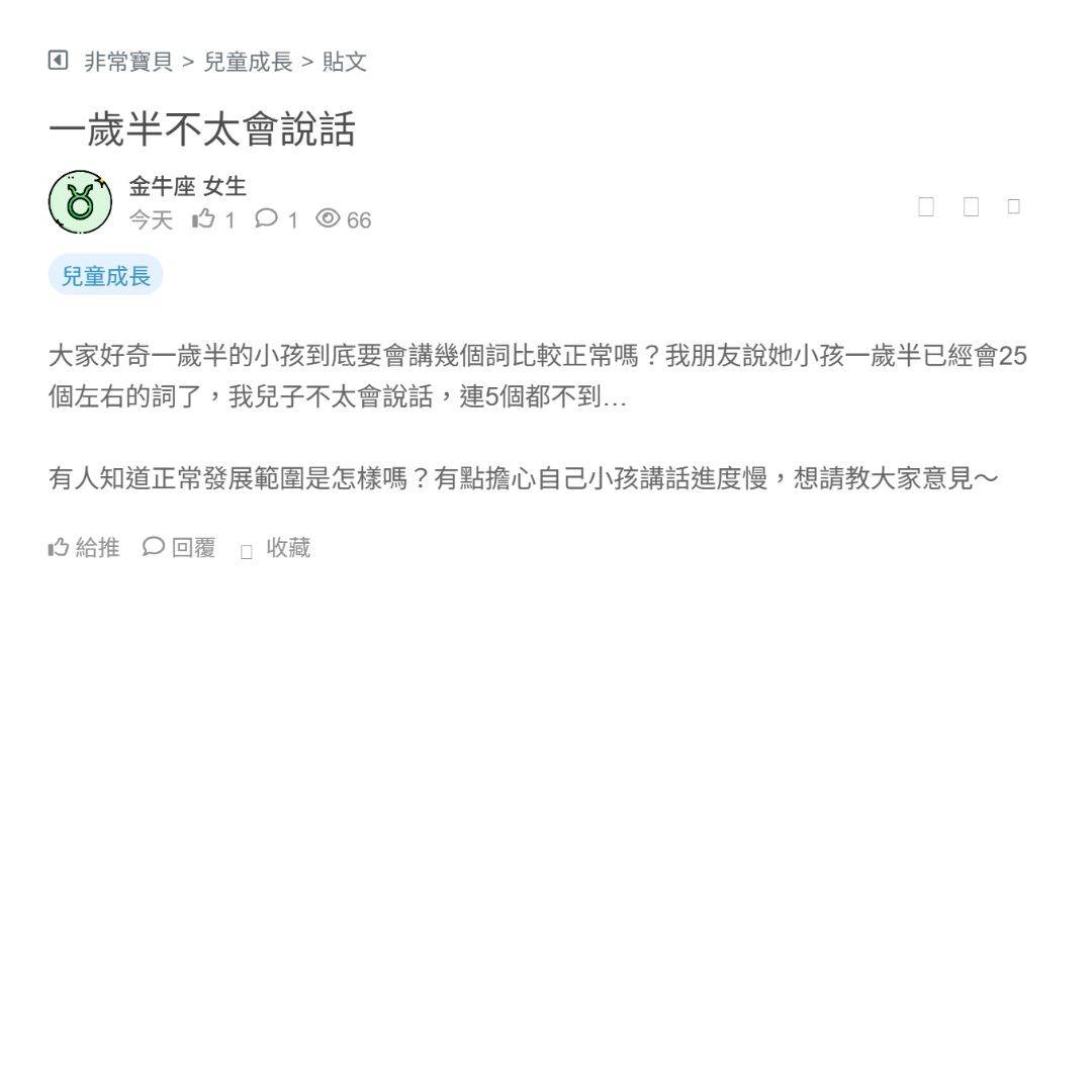 大家好 我是焦慮的媽咪 寶寶現在1歲8個月 會指東西但幾乎 不會有明確詞彙 最近健兒門診被醫生提醒需要盡早評估 早療這句話像晴天霹靂打中心臟 醫生說寶...