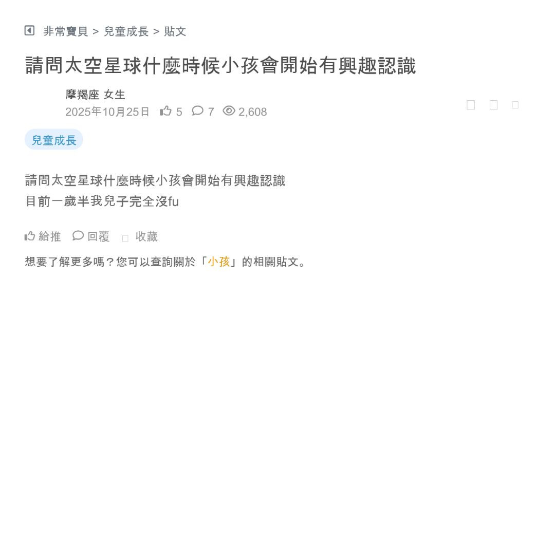 我家小男生一歲三個月,覺得他好像不太愛恐龍耶? 小男生大概幾歲開始會對恐龍有興趣啊,會模仿恐龍叫聲,我兒子就是沒什麼反應 我有買一些恐龍玩具給他,結果他寧願玩車車或軟積木,看到恐龍的繪本也只有翻翻沒有特別在意,身邊朋友的孩子都超瘋恐龍,還會認好多恐龍名字(大一點的)但我家這個就像沒感覺一樣,是不... 看更多