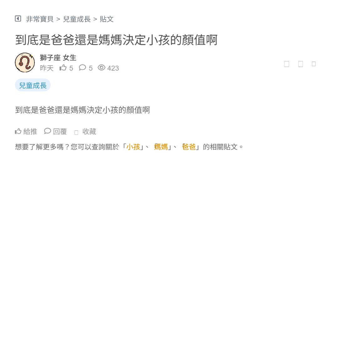 目前懷孕37w 好期待就快卸貨了 想知道小孩出生後會比較像爸爸還是媽媽? 有經驗的爸爸媽媽可以分享嗎~ 希望是媽媽😊 看更多