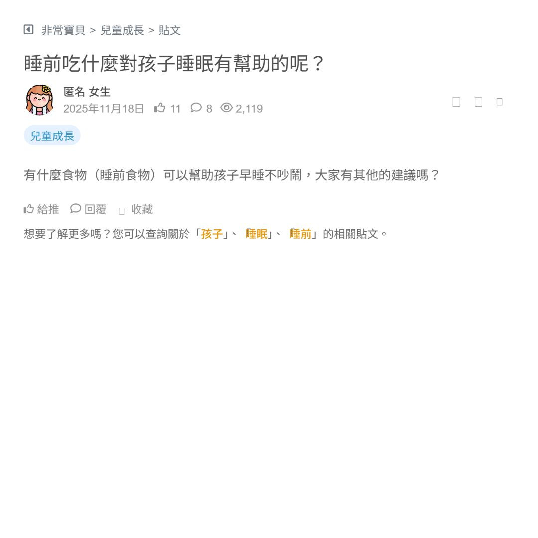 有什麼食物(睡前食物)可以幫助孩子早睡不吵鬧,大家有其他的建議嗎?
