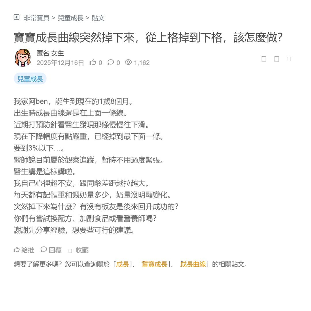 寶寶成長曲線突然掉下來,從上格掉到下格,該怎麼做?
