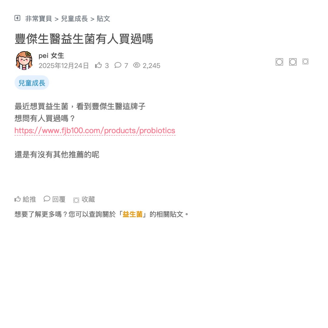 請問大家有給小孩吃過台塑生醫的益生菌嗎,評價如何,跟卡蘿琳益生菌比起來怎麼樣?感謝🙏 看更多