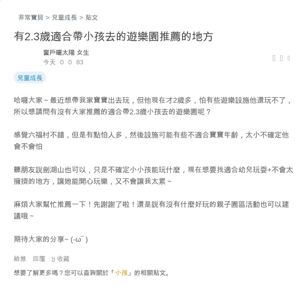 麻煩大家幫忙推薦一下!先謝謝了啦!還是說有沒有什麼好玩的親子園區活動也可以建議哦~