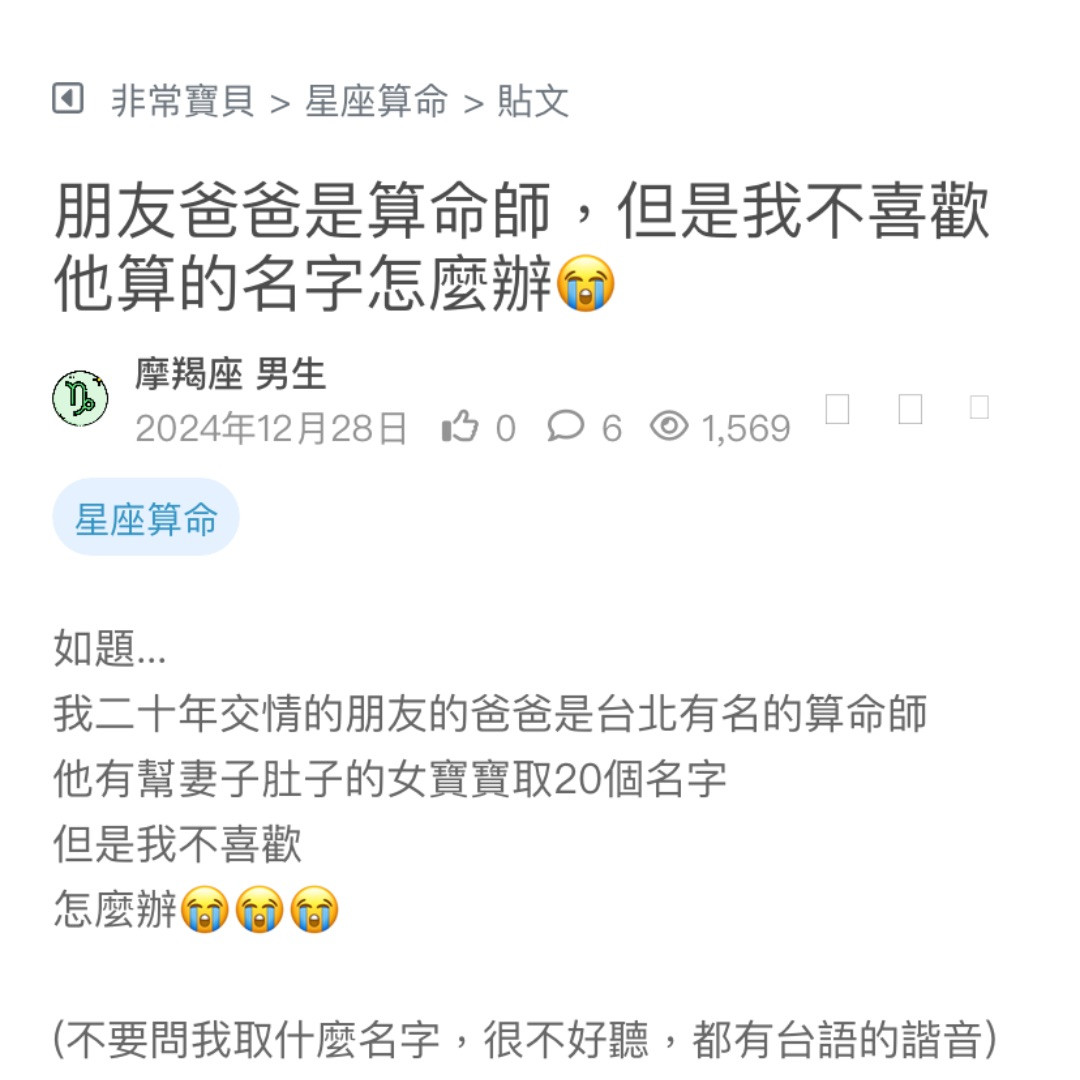 朋友爸爸是算命師,但是我不喜歡他算的名字怎麼辦😭