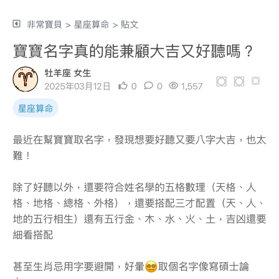 甚至生肖忌用字要避開,好暈😵💫取個名字像寫碩士論文...