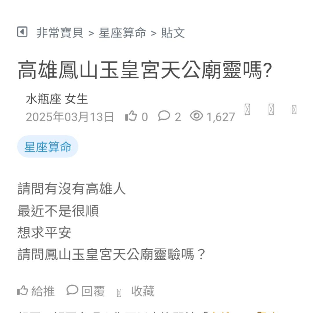 請問鳳山玉皇宮天公廟靈驗嗎?