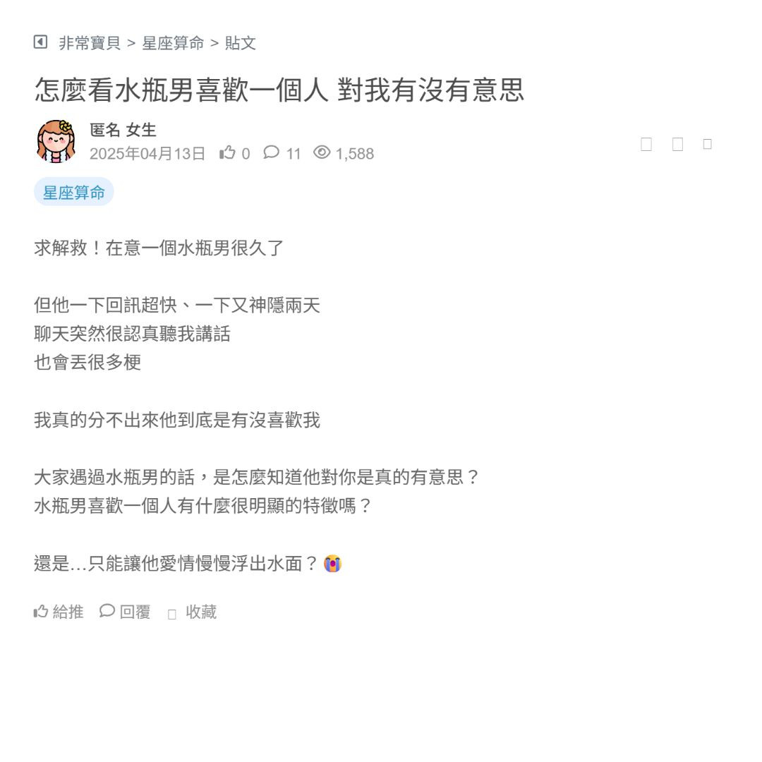 大家遇過水瓶男的話,是怎麼知道他對你是真的有意思?