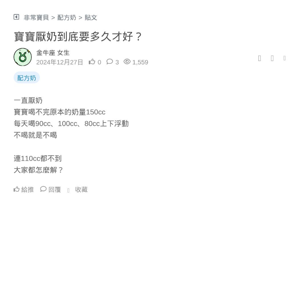 我家寶3m4m喝奶粉都會轉頭 怎樣會這樣子 餵他他就大哭的很不開心☹️ 是配方奶的問題嗎? 需不需要更換配奶粉 看更多