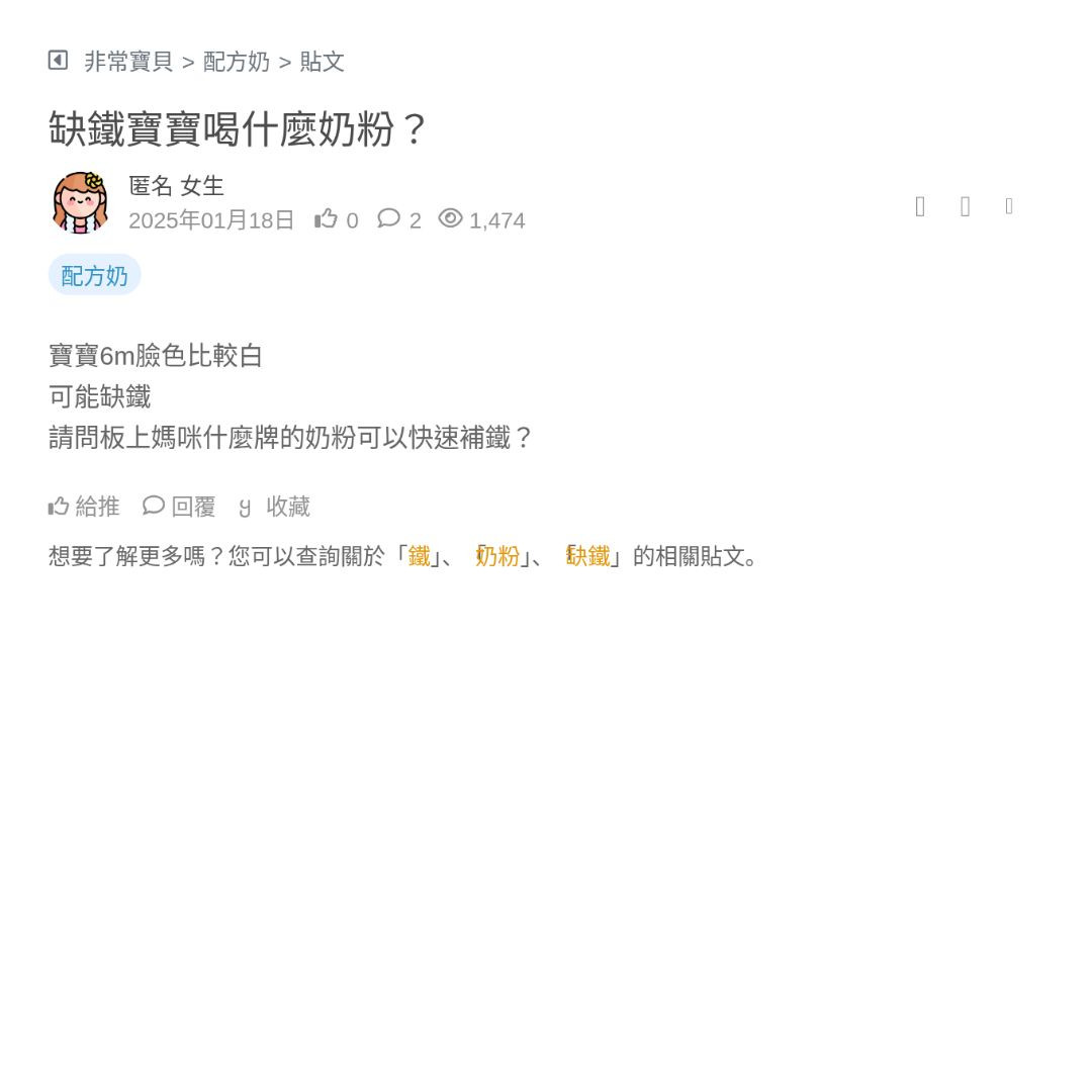 最近在考慮要不要幫寶寶的奶粉加鈣鐵之類的營養素 有媽咪有經驗分享嗎? 看更多