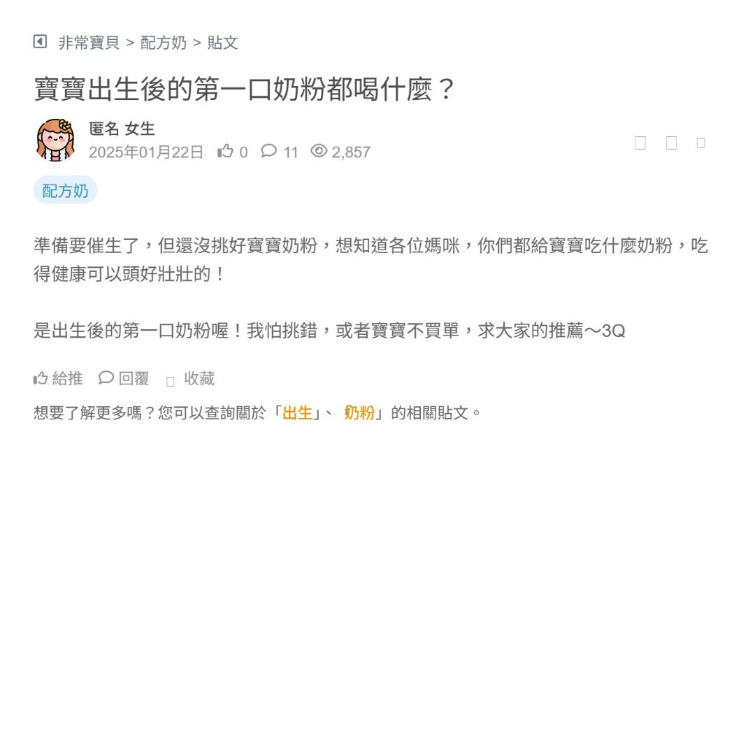 再兩個月寶寶就快出生了🐣求爸比媽咪推薦一出生寶寶可喝的奶粉~~3QQ 看更多
