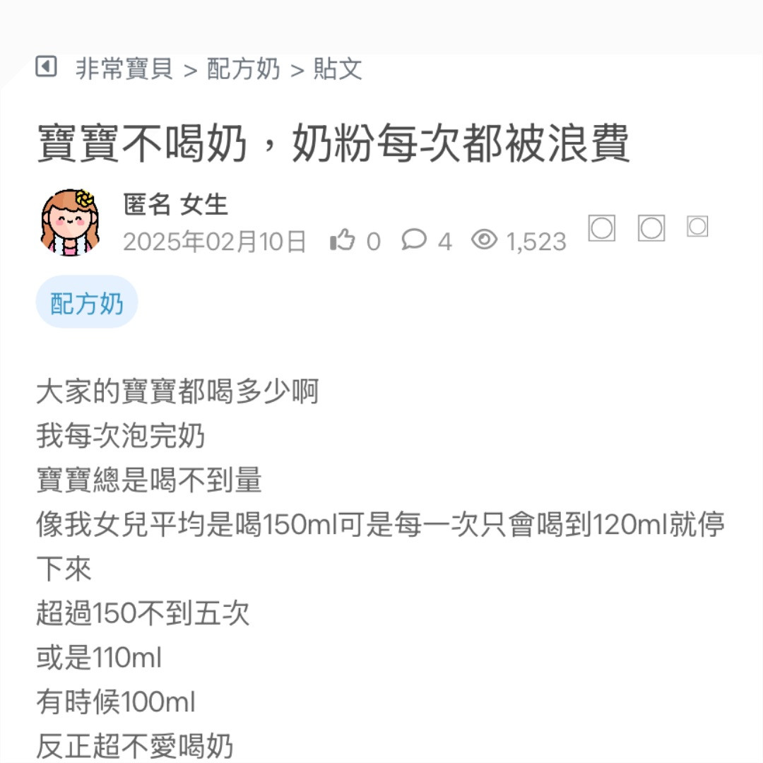 一直厭奶 寶寶喝不完原本的奶量150cc 每天喝90cc、100cc、80cc上下浮動 不喝就是不喝 連110cc都不到 大家都怎麼解? 看更多