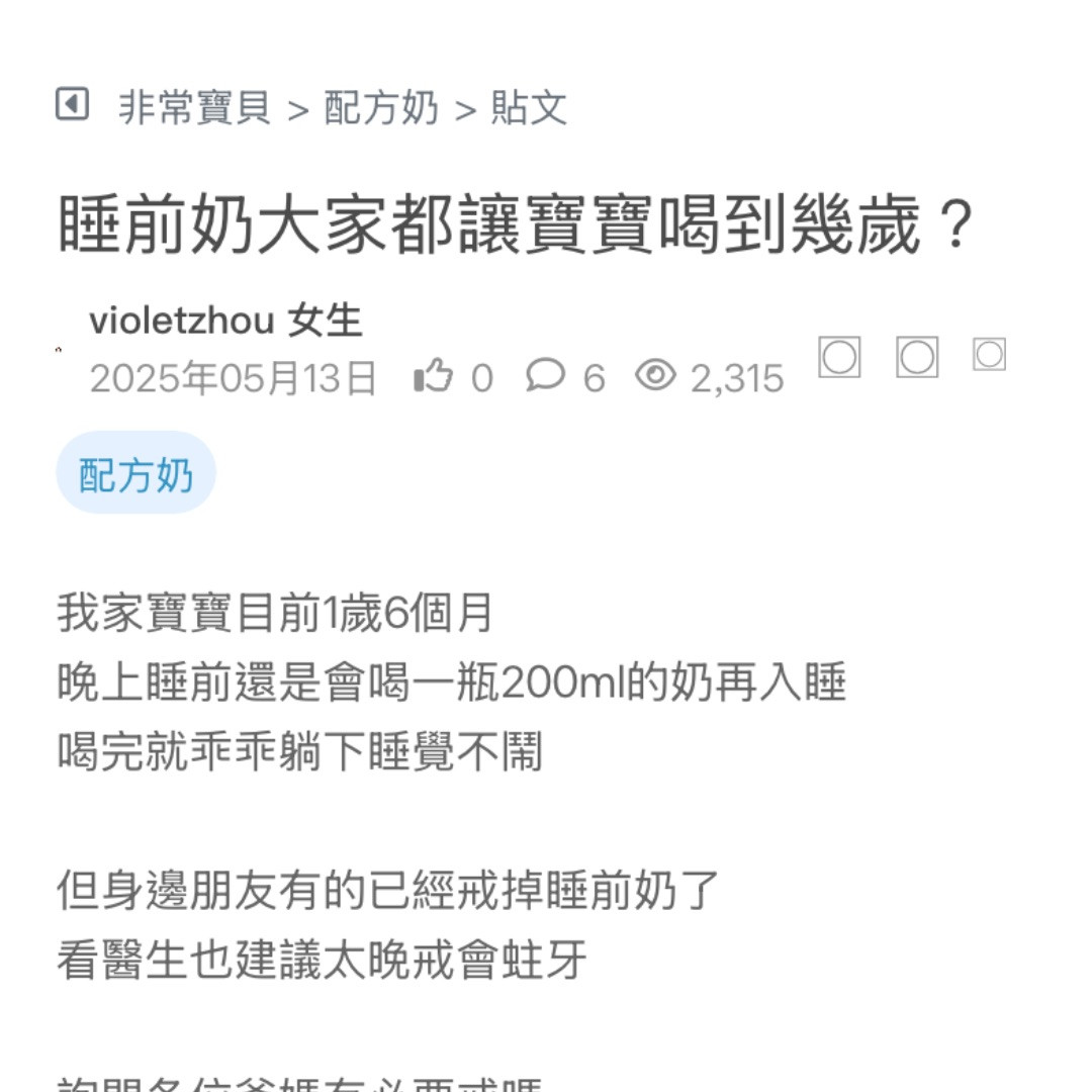 最近在考慮寶寶的離乳問題,想問問大家的經驗 我家寶寶目前1歲3個月,對我的內內無限依戀 一直黏我到不行,每天睡前一定要喝到,不給喝就會哭的眼淚很大滴...一...