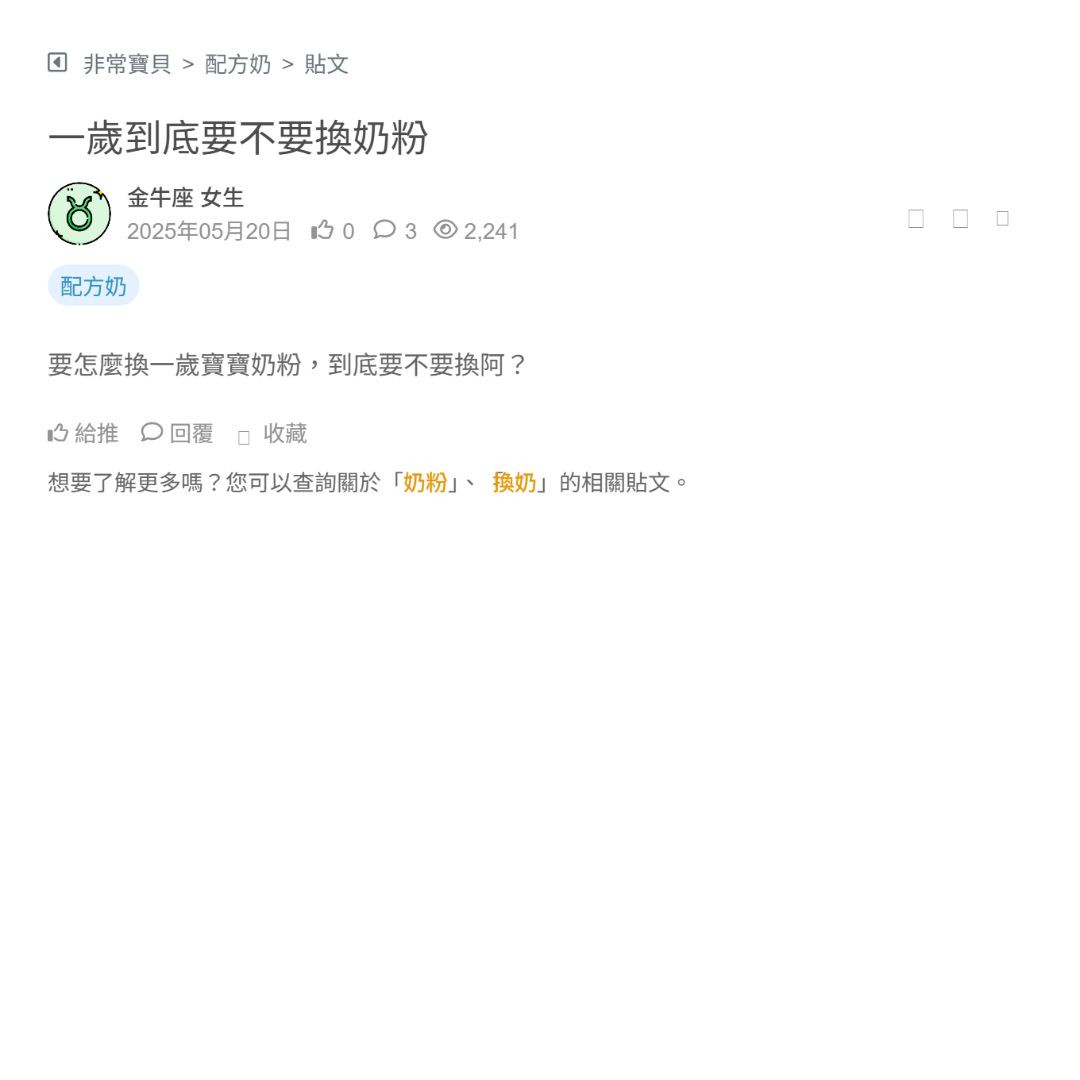 有媽咪是1歲半再換3號奶粉嗎 看更多