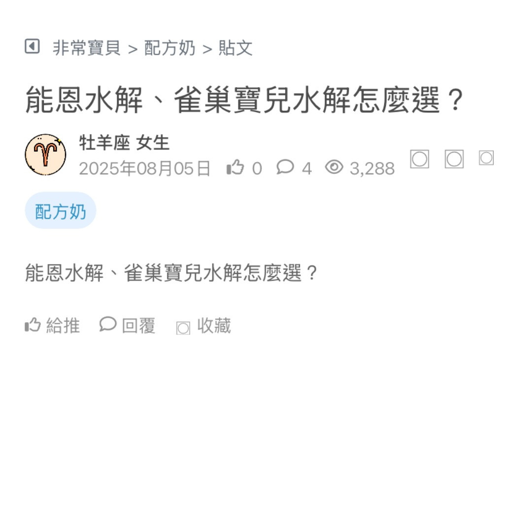 想請問有沒有媽咪幫寶寶從能恩全護轉成能恩水解的經驗?🥺 我家寶寶現在4個月,之前喝能恩全護都還可以,但最近有點腸胃不適、排便比較稀,醫生建議可以考慮試試...