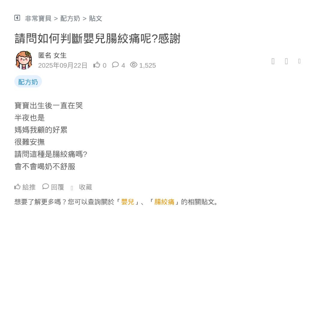 請問如何判斷嬰兒腸絞痛呢?感謝